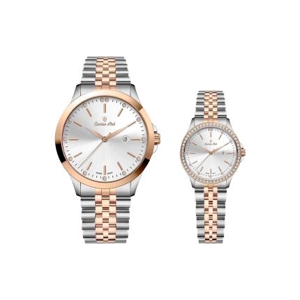 ست ساعت مردانه و زنانه برند سوئیس آرت (Swiss Art)، ترکیبی خیرهکننده از ظرافت سوئیسی و کیفیت بینظیر است که برای زوجهای خوشسلیقه طراحی شده است. این ست لوکس با بهرهگیری از موتور دقیق و معتبر سوئیسی Ronda، نهایت دقت و دوام را تضمین میکند. شیشه ضد خش سافایر و قابلیت ضد آب بودن، مقاومت فوقالعادهای در برابر شرایط مختلف به آن بخشیدهاند تا با خیال آسوده در زندگی روزمره و موقعیتهای خاص از آن استفاده کنید.