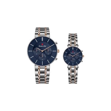 ست ساعت مردانه و زنانه برند سوئیس آرت (Swiss Art)، ترکیبی خیرهکننده از ظرافت سوئیسی و کیفیت بینظیر است که برای زوجهای خوشسلیقه طراحی شده است. این ست لوکس با بهرهگیری از موتور دقیق و معتبر سوئیسی Ronda، نهایت دقت و دوام را تضمین میکند. شیشه ضد خش سافایر و قابلیت ضد آب بودن، مقاومت فوقالعادهای در برابر شرایط مختلف به آن بخشیدهاند تا با خیال آسوده در زندگی روزمره و موقعیتهای خاص از آن استفاده کنید.