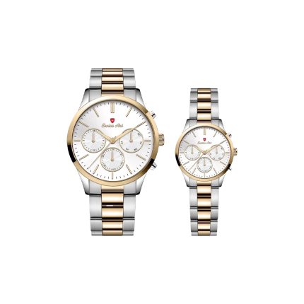 ست ساعت مردانه و زنانه برند سوئیس آرت (Swiss Art)، ترکیبی خیرهکننده از ظرافت سوئیسی و کیفیت بینظیر است که برای زوجهای خوشسلیقه طراحی شده است. این ست لوکس با بهرهگیری از موتور دقیق و معتبر سوئیسی Ronda، نهایت دقت و دوام را تضمین میکند. شیشه ضد خش سافایر و قابلیت ضد آب بودن، مقاومت فوقالعادهای در برابر شرایط مختلف به آن بخشیدهاند تا با خیال آسوده در زندگی روزمره و موقعیتهای خاص از آن استفاده کنید.