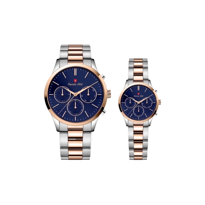 ست ساعت مردانه و زنانه برند سوئیس آرت (Swiss Art)، ترکیبی خیرهکننده از ظرافت سوئیسی و کیفیت بینظیر است که برای زوجهای خوشسلیقه طراحی شده است. این ست لوکس با بهرهگیری از موتور دقیق و معتبر سوئیسی Ronda، نهایت دقت و دوام را تضمین میکند. شیشه ضد خش سافایر و قابلیت ضد آب بودن، مقاومت فوقالعادهای در برابر شرایط مختلف به آن بخشیدهاند تا با خیال آسوده در زندگی روزمره و موقعیتهای خاص از آن استفاده کنید.