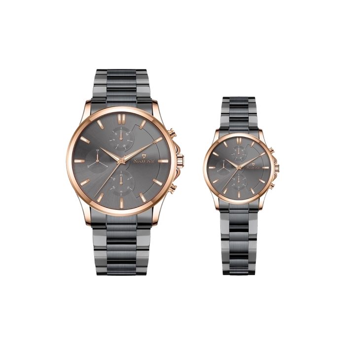 ست ساعت مردانه و زنانه برند سوئیس آرت (Swiss Art)، ترکیبی خیرهکننده از ظرافت سوئیسی و کیفیت بینظیر است که برای زوجهای خوشسلیقه طراحی شده است. این ست لوکس با بهرهگیری از موتور دقیق و معتبر سوئیسی Ronda، نهایت دقت و دوام را تضمین میکند. شیشه ضد خش سافایر و قابلیت ضد آب بودن، مقاومت فوقالعادهای در برابر شرایط مختلف به آن بخشیدهاند تا با خیال آسوده در زندگی روزمره و موقعیتهای خاص از آن استفاده کنید.